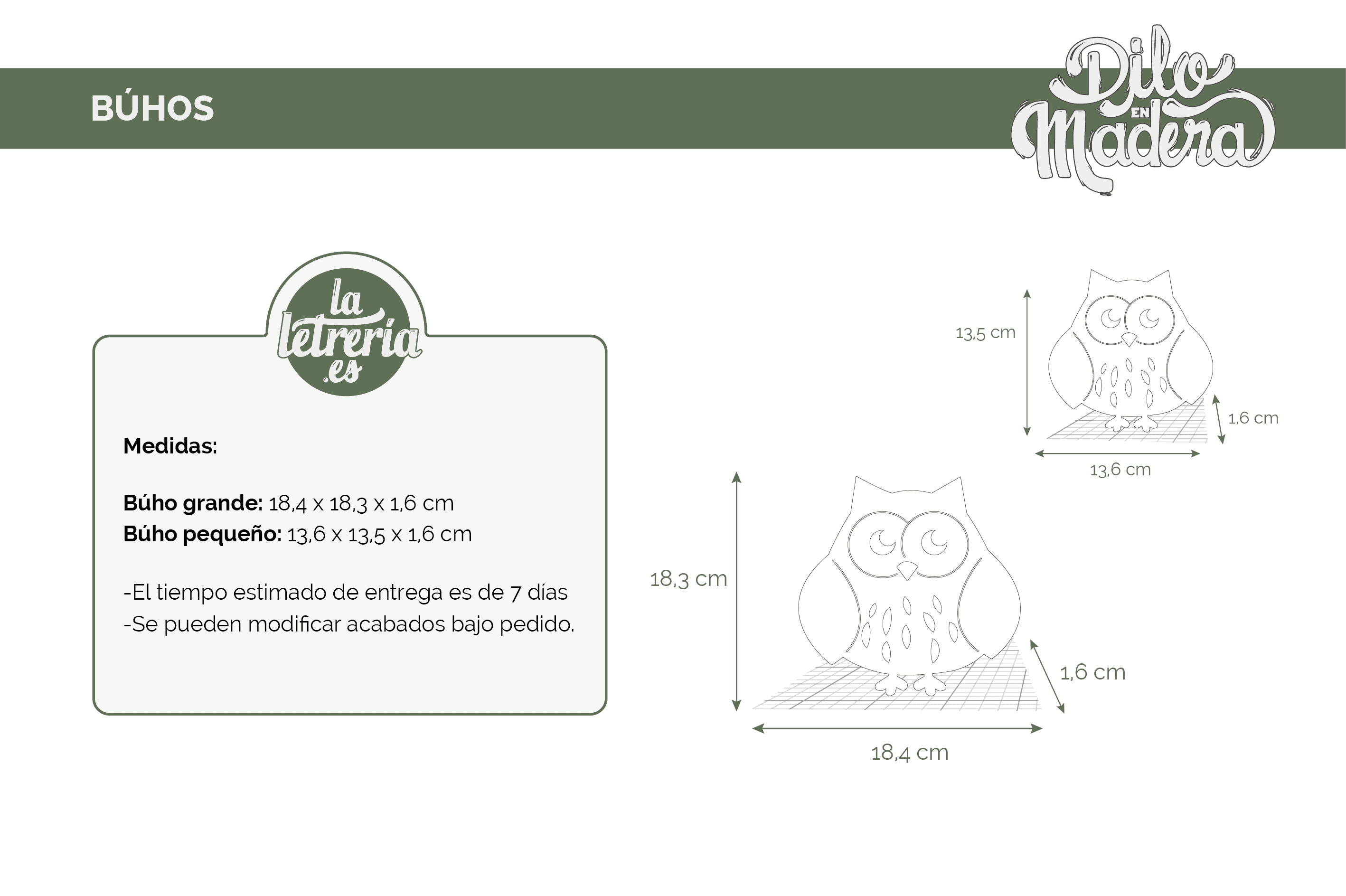 Ese animal que escasas personas han tenido el gusto de encontrarse. Pero que infinidades de otras coleccionan en diferentes formas, colores, tamaños y materiales. Nosotros en Laletreria.es aún sin entender este fenómeno, hemos decidido unirnos a él, y aportar nuestro granito de arena. Aquí os presentamos a nuestros búhos, el grande y el pequeño. Representa tanto el vínculo madre-padre/hij@, como herman@ mayor-herman@ pequeñ@.